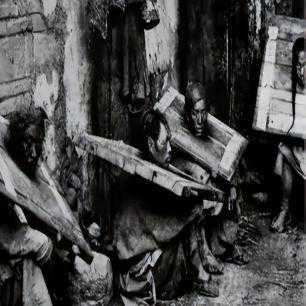 这些囚犯被扒了衣服,脚上戴着锁链,犹如困兽,插翅难逃,应该是重刑犯。