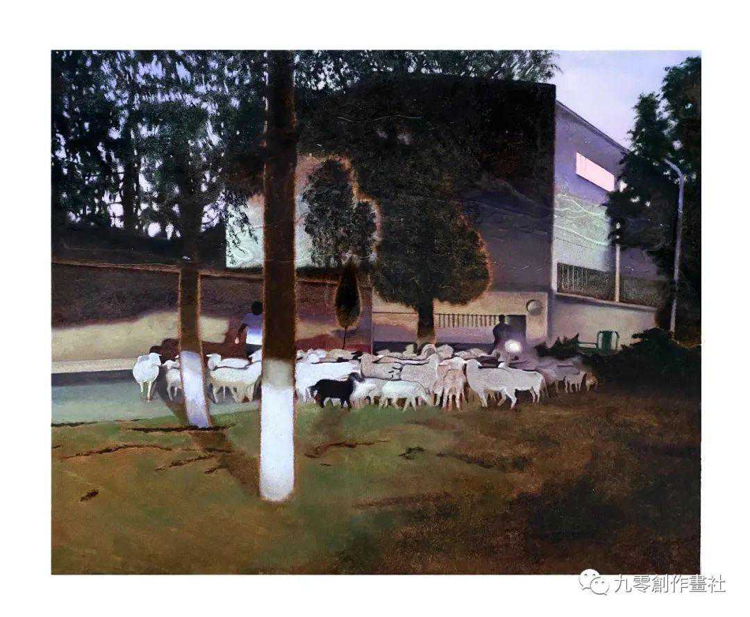 艺术家于静文在本次展览中展示了《暮色》。这幅画具有怀旧的氛围和电影般的质感。艺术家使用不饱和的颜色来增强对比度,创造这样的情绪。尽管这是一幅现实主义绘画,但艺术家简化了形状和细节,以软化轮廓。由于使用了这样的颜色,观众会怀疑场景是在日落之前还是在日出之前。现代建筑前的羊群就是矛盾的一个例子。