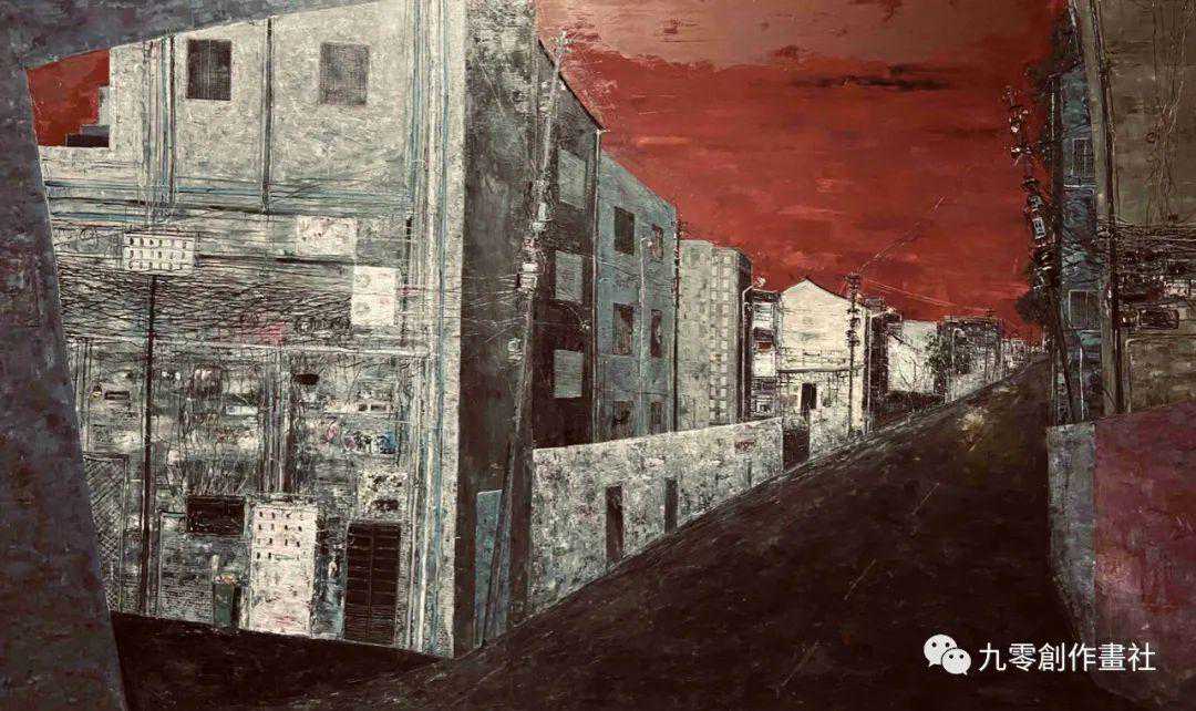戴湘文《世纪遗痕之老街3》120x200cm布面油画2022