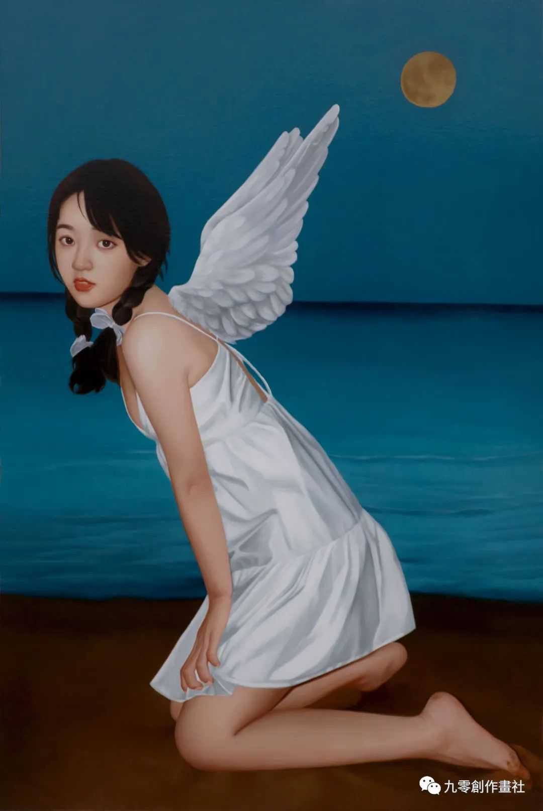 芮正洪《沙滩上的月光天使》60x90cm布面油画2021