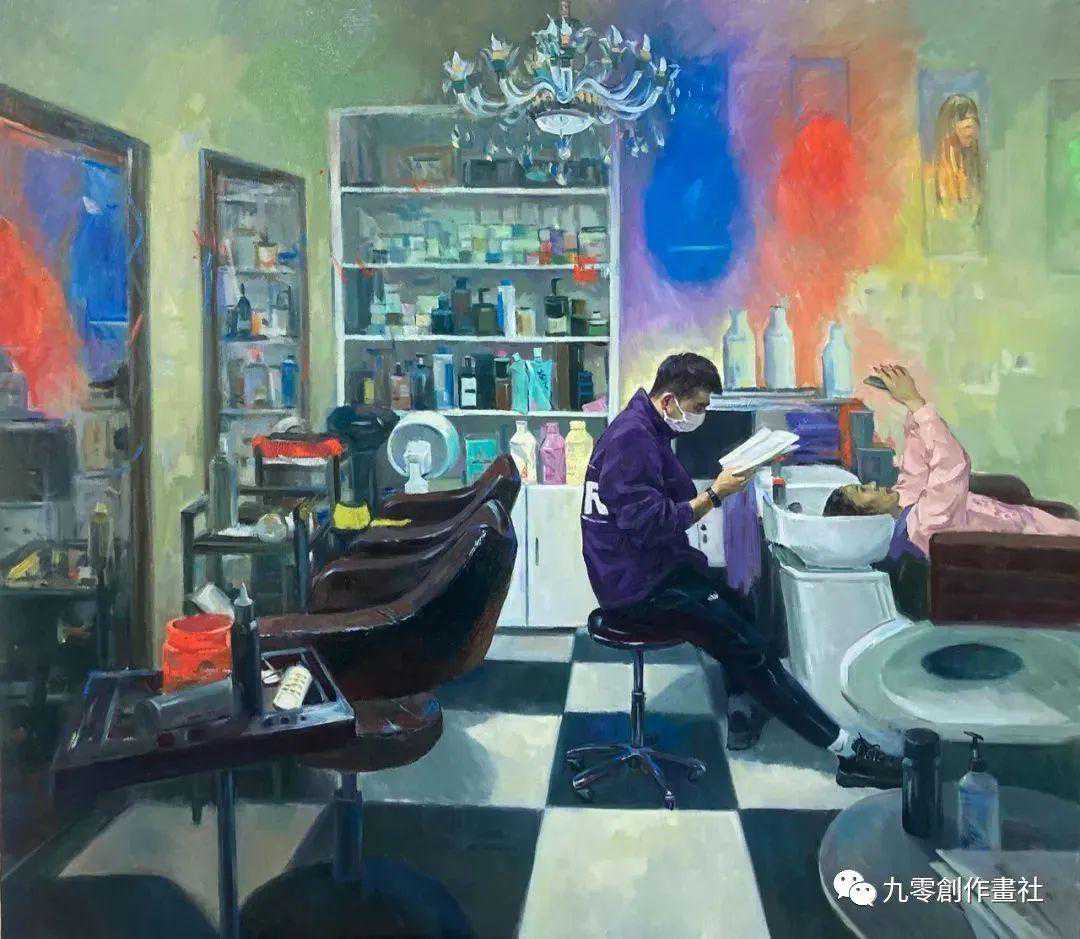 徐啟云《乡村理发店》布面油画100x120cm2022
