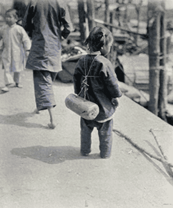 100多年前的广州码头,由于小孩子无人照看,大人们都忙于生计挣钱养家。