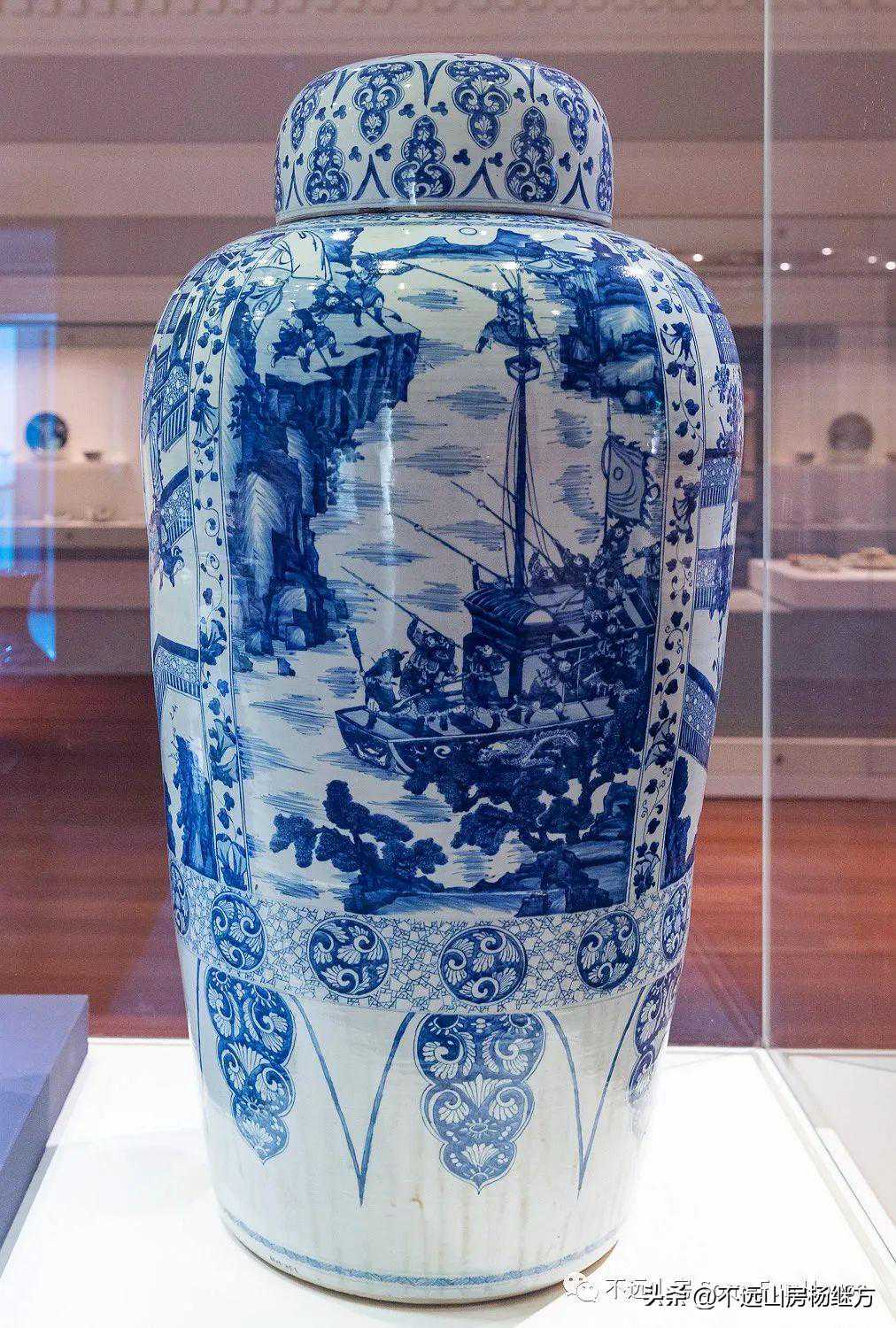 新加坡亚洲文明博物馆藏清代康熙青花薛仁贵跨海征东白袍记故事纹瓶
