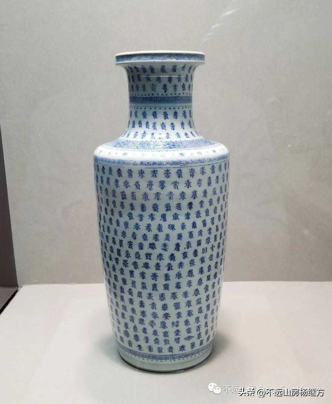 中贸圣佳2021春的康熙青花百寿图棒槌瓶,高36厘米