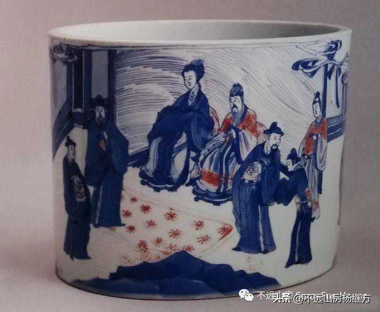 上海博物馆康熙官窑青花釉里红人物笔筒