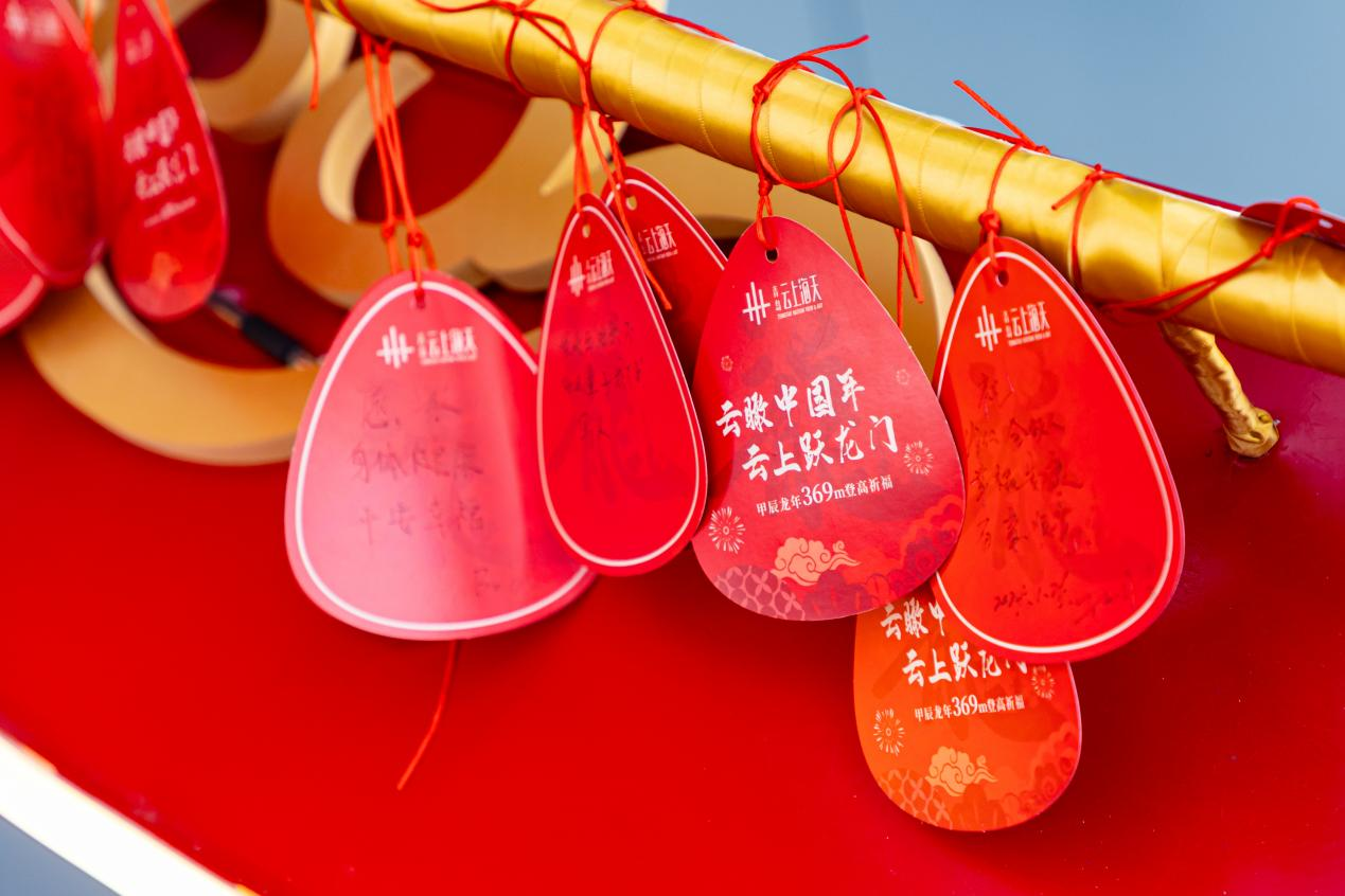 新年登高祈福是中华民族传统习俗,寓意“新年登高步步高,年年登高年年高”。春节期间,青岛云上海天城市观光厅特设云上龙门,游客可在青岛最高的地方抽取新年上上签,写心愿龙鳞卡,摸摸龙头开启新年好运。除此之外,青岛云上海天还重新装点了全国首个悬挑式玻璃观景平台——钻石角,游客可透过脚底的透明玻璃换个角度欣赏城市,与家人共同留下新年的第一张全家福。
