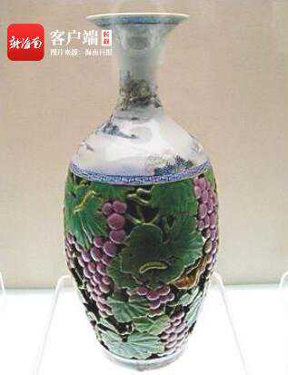 据史料记载,早在三国时期就有青釉下彩绘的工艺,当时釉下彩绘颜色为褐黑色。到了唐代,釉下彩瓷工艺进一步发展,四川和湖南等地釉下彩绘以多色为主,浙江和扬州等地釉下彩绘则以青花为主。而真正现代意义的釉下五彩瓷,得追溯到清末湖南省醴陵。下图即为醴陵釉下五彩镂空葡萄花瓷瓶(清宣统),现藏湖南省博物馆。