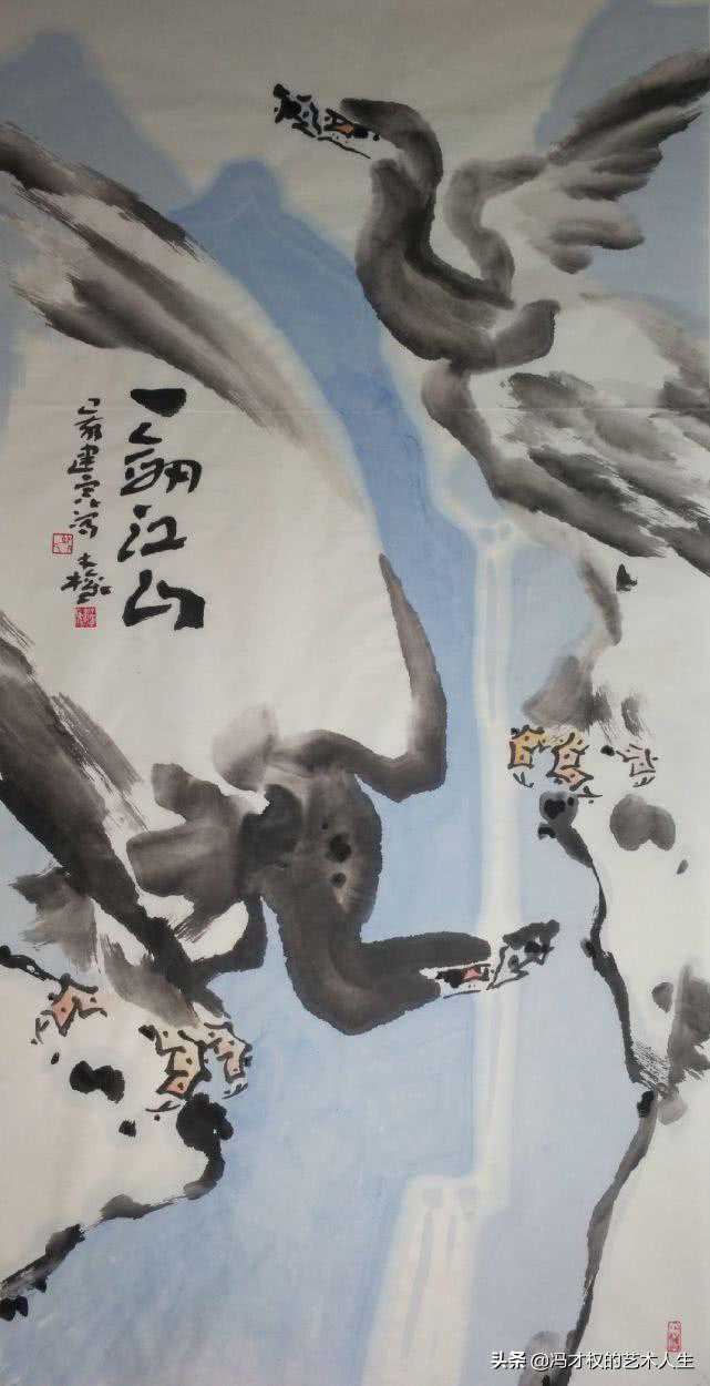 16.《山河藏奇秀》(冯才权鹰画)136X68CM