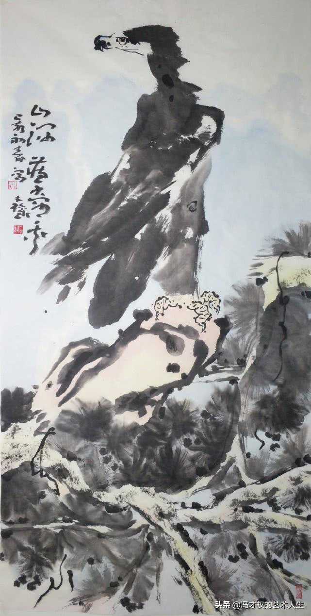 冯才权,能从小时候的一次“险历”中顿发,而痴迷画鹰、研究鹰的精神及重生,给人类带来的启发,并付诸于水墨交融的一次次尝试间,真正进入到“鹰即是我,我即是鹰”的“英雄”情结之中,值得记忆。
