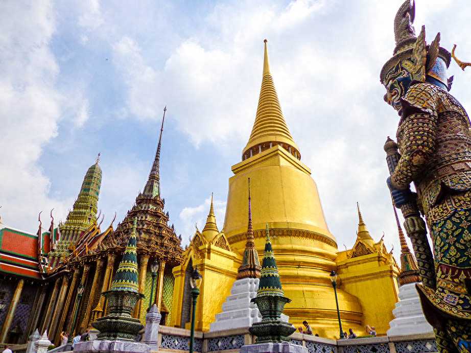 泰国玉佛寺(WatPhraKeo)位于曼谷大王宫东北角,是泰国最著名的佛寺,也是泰国三大国宝之一。建于1784年的玉佛寺是泰国大王宫的一部分,面积约占大王宫的1/4。
