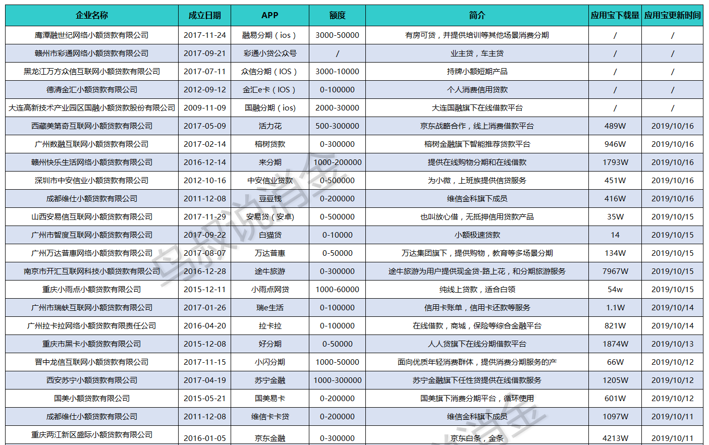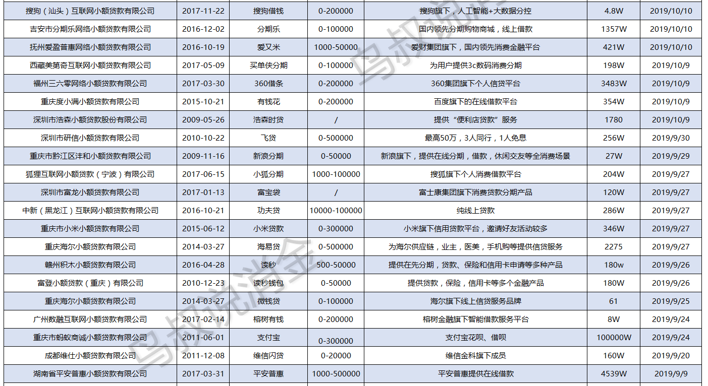为了防止大家再去接触高利贷,鸟叔收集全国合法正规互联网小贷公司,以及他们APP;这些公司都获得国家颁发的小贷牌照,可在全国开展放贷业务,受地方金融局监管,在借款利率和催收方面都还算符合国家规定,较少存在砍头息的行为,遇到不合规的催收和高利息,也能通过地方金融局的官网打电话去举报,借款权益有一定的保障,大家需要资金周转和消费借款时,尽可能选择以下的APP去申请。