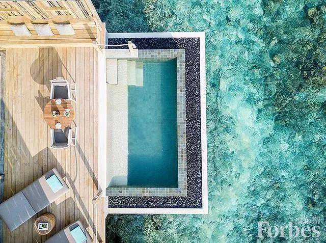 酒店巧妙注入了许多绿化元素,包括绿色屋顶花园及私人无边际泳池。不过与其他海岛酒店不同的是,40个独立泳池别墅不在水上,而是隐藏在树林间,这样的设计大大保留了原始的自然环境,根据不同的别墅位置,你可以欣赏到每天日落和日出两种景色。