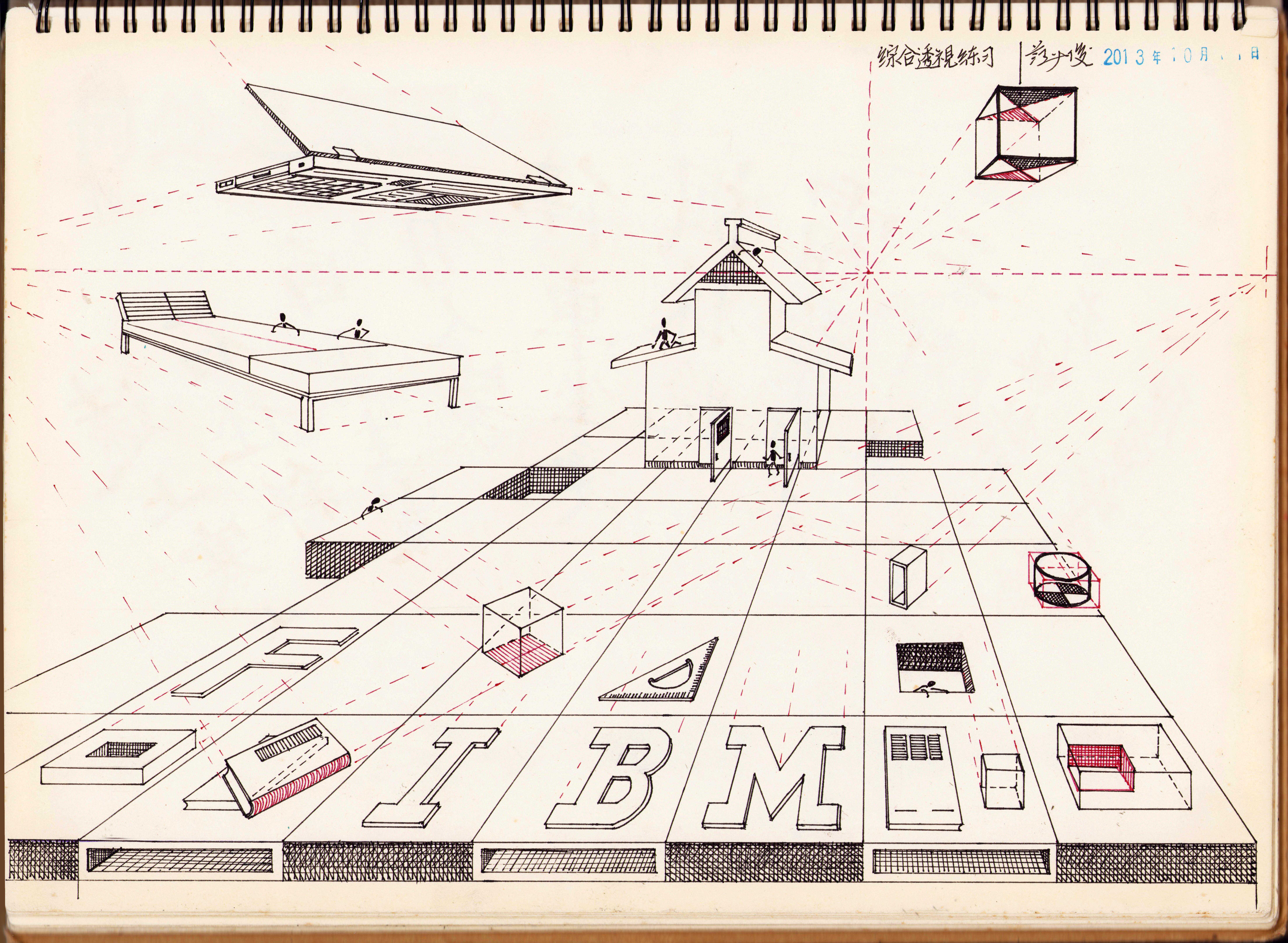 02.范美俊教室透视(素描)钢笔纸本,26×37cm,2011年