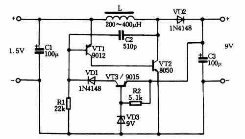 以下是几种简单的直流升压电路,主要优点:电路简单、低成本;缺点:转换效率较低、电池电压利用率低、输出功率小。这些电路比较适合用在万用电表中,替代高压叠层电池。