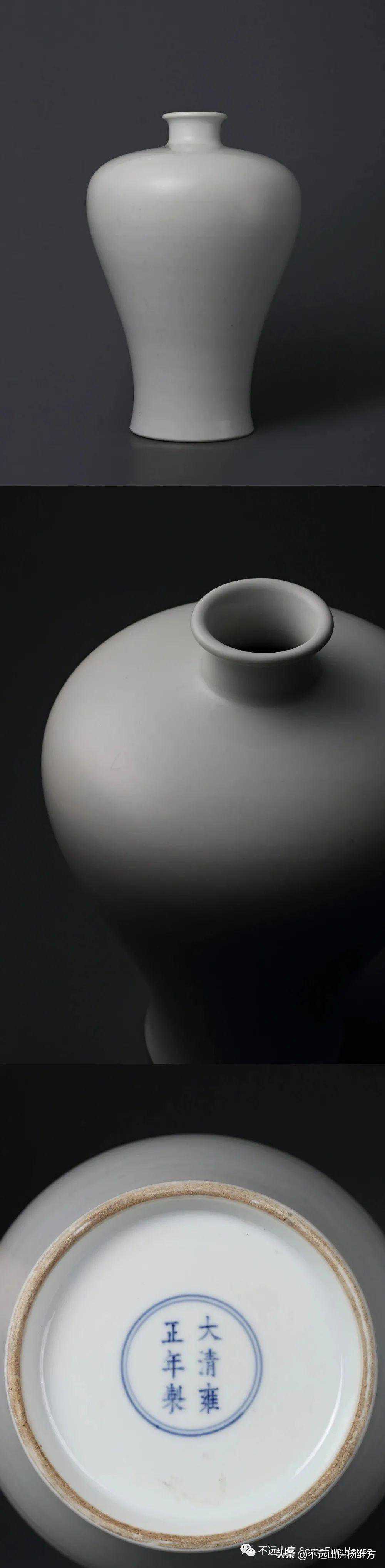 雍正时期的白釉没有添加任何呈色剂,只是将胎与釉中的铁降低到最底限度,再施一层高质量的透明釉,完全依靠胎土本身的白度呈现出白色。白釉瓷器胎土的精纯度要求非常高,稍微有一点杂质就会影响釉面的纯净。白釉是瓷器的本色釉,一般认为是最容易控制的,其实不然。因为所有的瓷土和釉料,都或多或少地含有一些氧化铁,烧成之后会呈现出或深或浅的青色调,必需把胎釉中的铁元素降低到0.75%o以下,才能烧出纯正的白色。