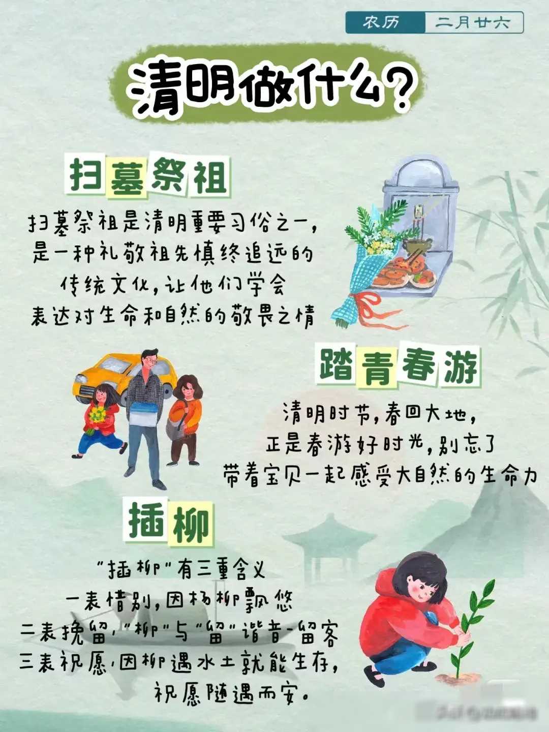 总的来说,清明节是一个充满教育意义的节日,通过向孩子讲述清明节的起源,可以培养他们的爱国情怀和家族观念,也能够让他们更加深入地了解中国的传统文化。愿传统文化在孩子心中生根发芽,继续传承下去。