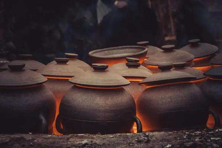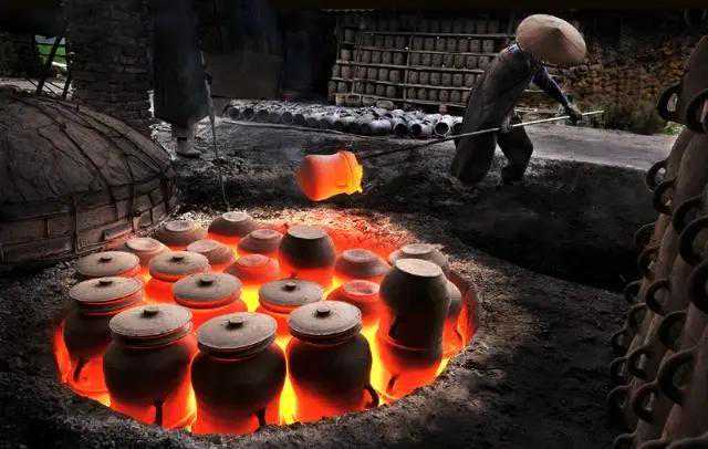 接下来就是“土与火”的混合,即“烤”。烘干后的坯胎放在一种叫做“馒头窑”的窑炉里,通过鼓风加热,将炉膛内部的温度维持在1200~1300摄氏度之间,然后关闭炉子,让高温的炉子与窑里的有机物质相结合,发生物理和化学作用,让材料发挥出不同的作用。