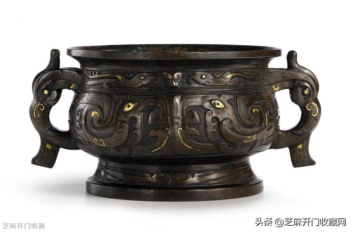 4:晚明铜错金银夔龙纹簋式炉,尺寸:28.5厘米,估价:HKD600,000~800,000,成交价:HKD2,680,000