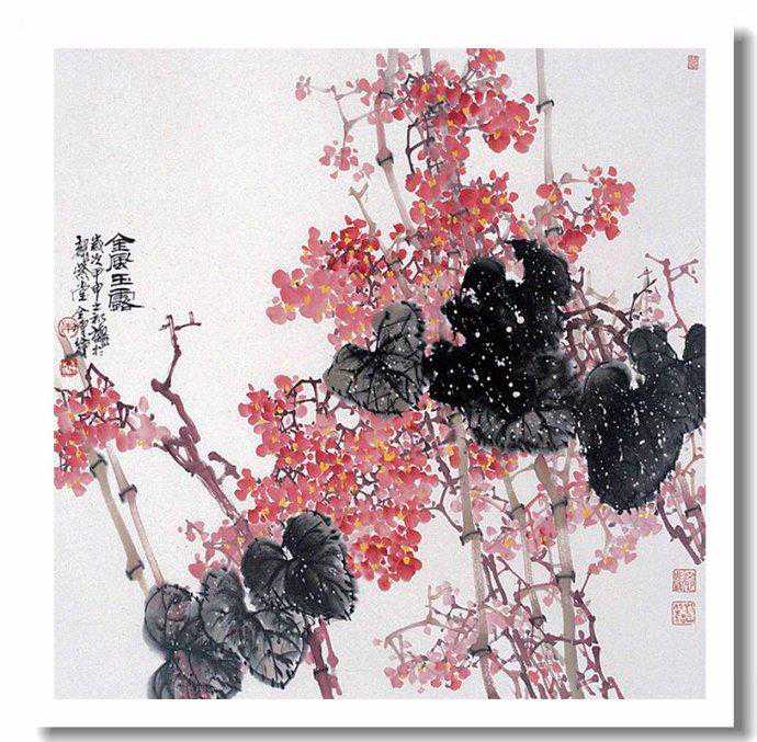 朱全增的花鸟画取法诸家而不宗于一家一派,在笔墨语言上汲取综合了古典与现代花鸟画传统经典样式的语汇,也综合了北方与南方画派的不同风格,特别在继承古典花鸟画传统基础上进行了改革与创新。朱全增的花鸟画半工半写,出工入写,把工笔画法的写实性和装饰性与写意画法的表现性和抒情性有机地结合起来,对笔墨与色彩配合的火候把握得适度而巧妙,或清丽,或浓艳,或淡雅,或繁丰,做到和谐统一,格调脱俗。他的画还吸收了山水画的特点,笔墨苍劲、色彩绚烂、洒脱自然、精细严谨、宏远气象、境界阔达,富有活力和情趣,令人耳目一新。