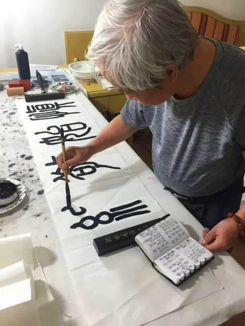 洪老在大鹿岛创作的书法作品