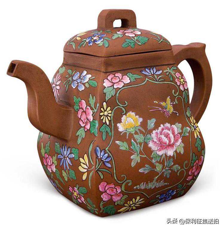 8,清初澹然斋加彩紫砂汉方壶