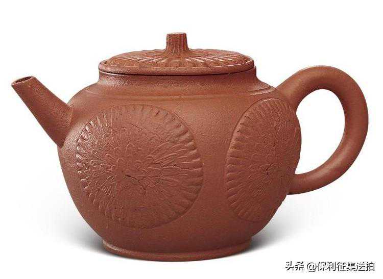 19,清早期朱泥贴花团菊纹壶