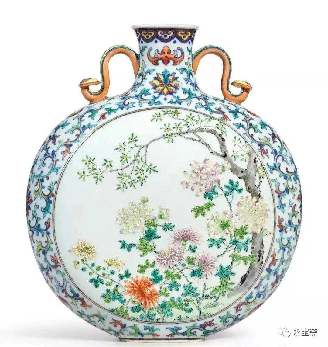 清乾隆斗彩福寿开光题诗粉彩秋芳图扁壶香港苏富比2017秋拍成交价:14,500,000港元