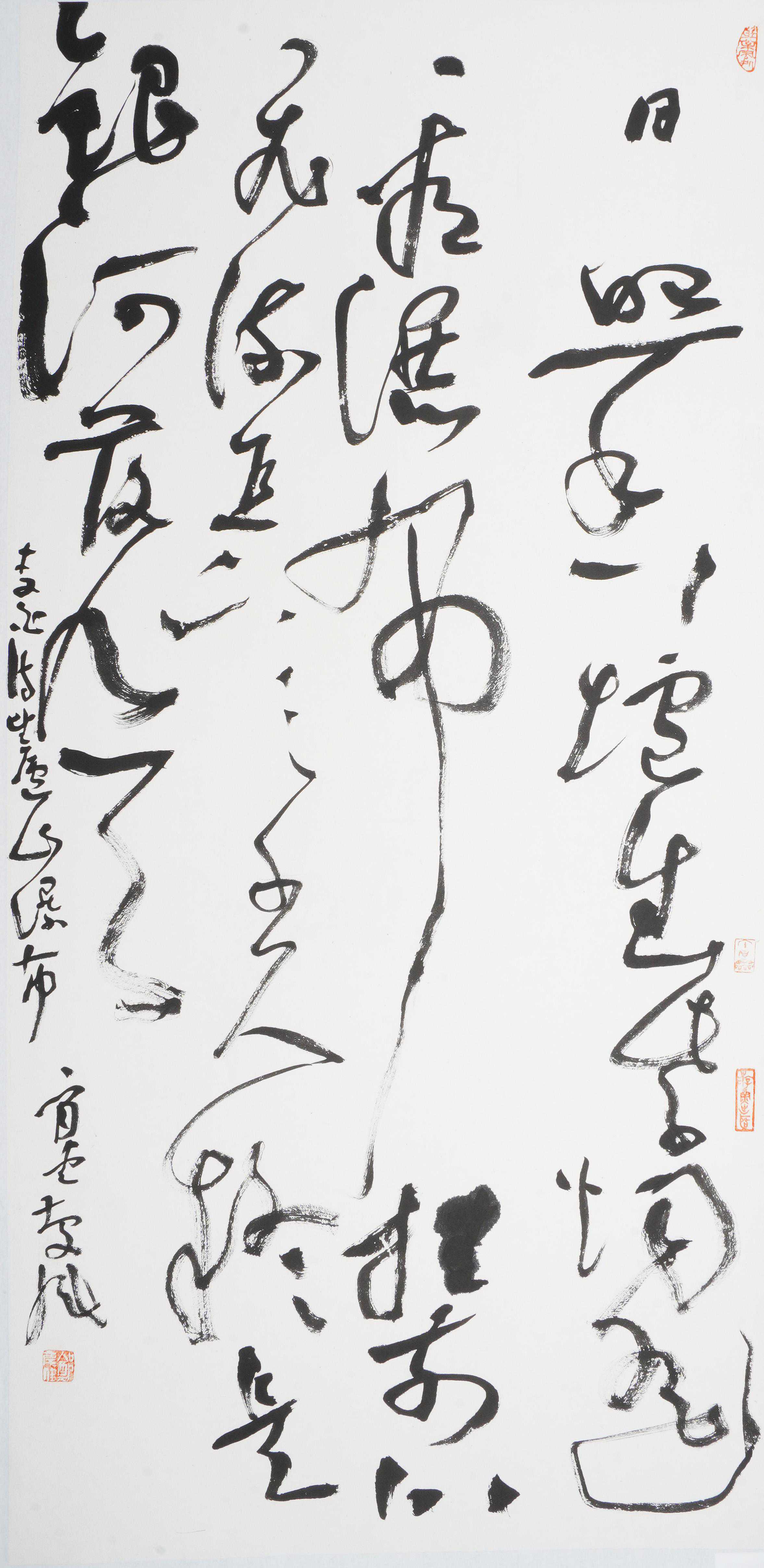 草书的关键在结字和线条,先生的结字新奇险崛,是造险的高手,虽异于草书诸贤,但我们仍能感受到一种秩序之美,和谐之美。线条的变化非常自然,表现力大为丰富;始终流贯着一种鲜活的生命之气。其书法作品笔法灵动多变,线条拙朴而流畅,充分体现了他对中国传统文化的深刻理解和对时代审美取向的准确把握。他的行草书,不仅充分反映了他的睿智与才情,更是他精神性情的自然流露和真实写照。
