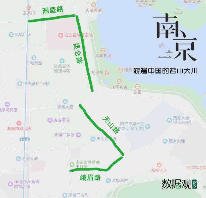 九华山、普陀路、天竺路、珞珈路、武夷路、昆仑山、洞庭路、天山路、峨眉路、琅琊路..走在南京的路上,仿佛感觉自己生活在武侠小说的世界里。