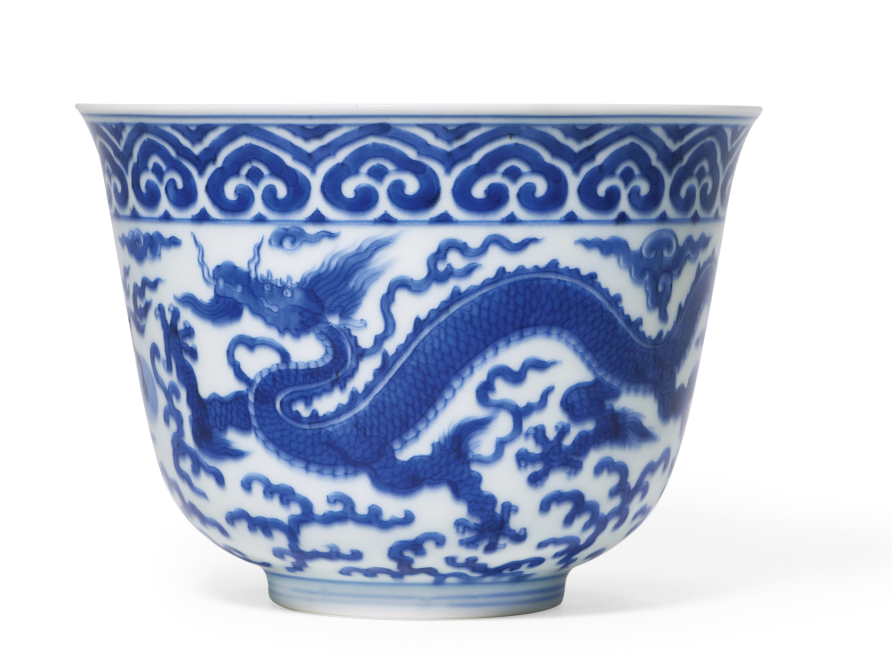 明宣德青花海水云龙纹钵