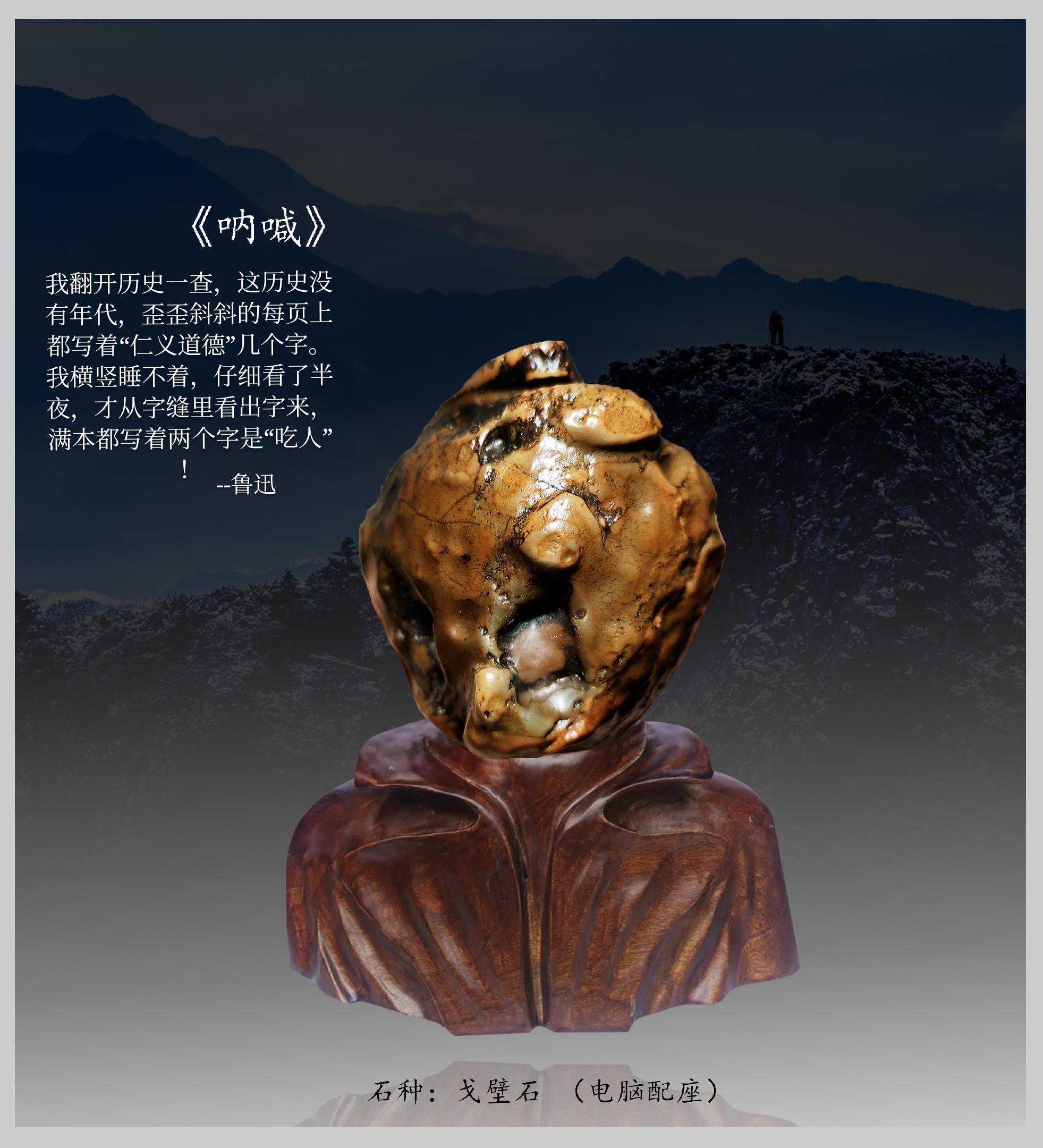 20年前,老刘又与奇石结缘,成为中石协创会时的初始会员,老刘收藏石头不计较石种,只要美,只要观赏主题自然天成、稀缺,形成难度大,能读出文化,品出故事,价高点也行,只要拿得动一定拿下,如果买不到手就会吃不香,睡不着。一次在洛阳石展上看到一方清江石,价高缺银子,就同卖方朋友协商,可否暂欠一部分,卖方欣然同意。石头拉回老家后,老刘立马带上早年收藏的纪念金币,急奔北京马甸市场转让还款。第二年还是在洛阳石展上,他又看上了一方大块清江画面石,后命名《群仙赴会》,因色彩、纹路都非常奇绝,寓意也好,可遇而不可求,但还是缺钱,没办法,老刘只好在石展上直接往美国打电话,让在美国斯坦福大学读研的儿子把他在学校贷的学费打10万过来,儿子说不买不行吗?老刘说全世界就此一方,我想买,错过了就再难遇上,钱以后可以再赚,同样的石头再找不来。儿子很孝顺立马给打了5万过来,老刘终于得偿所愿,满载而归。但后来老刘还是有点难受:为了自己的爱好不顾孩子的学习,我是不是有点太自私了。
