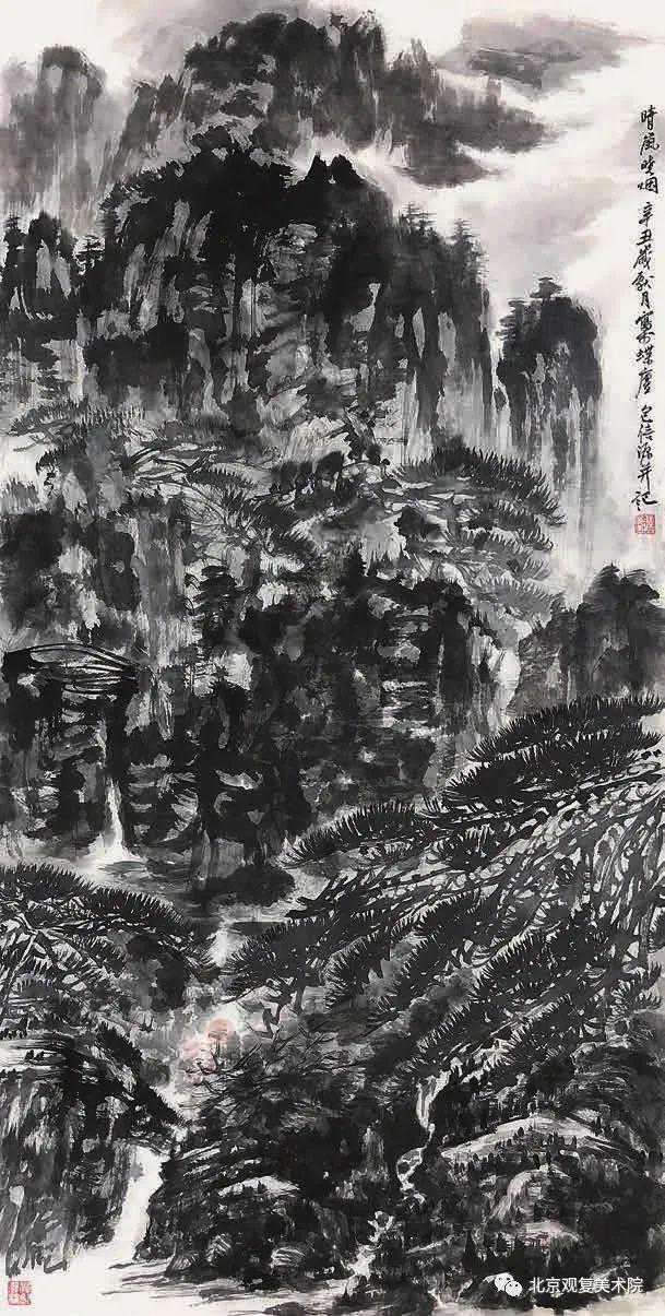 《遥望山谷溪泉流,更写高峰云雾起》140×70cm2021年
