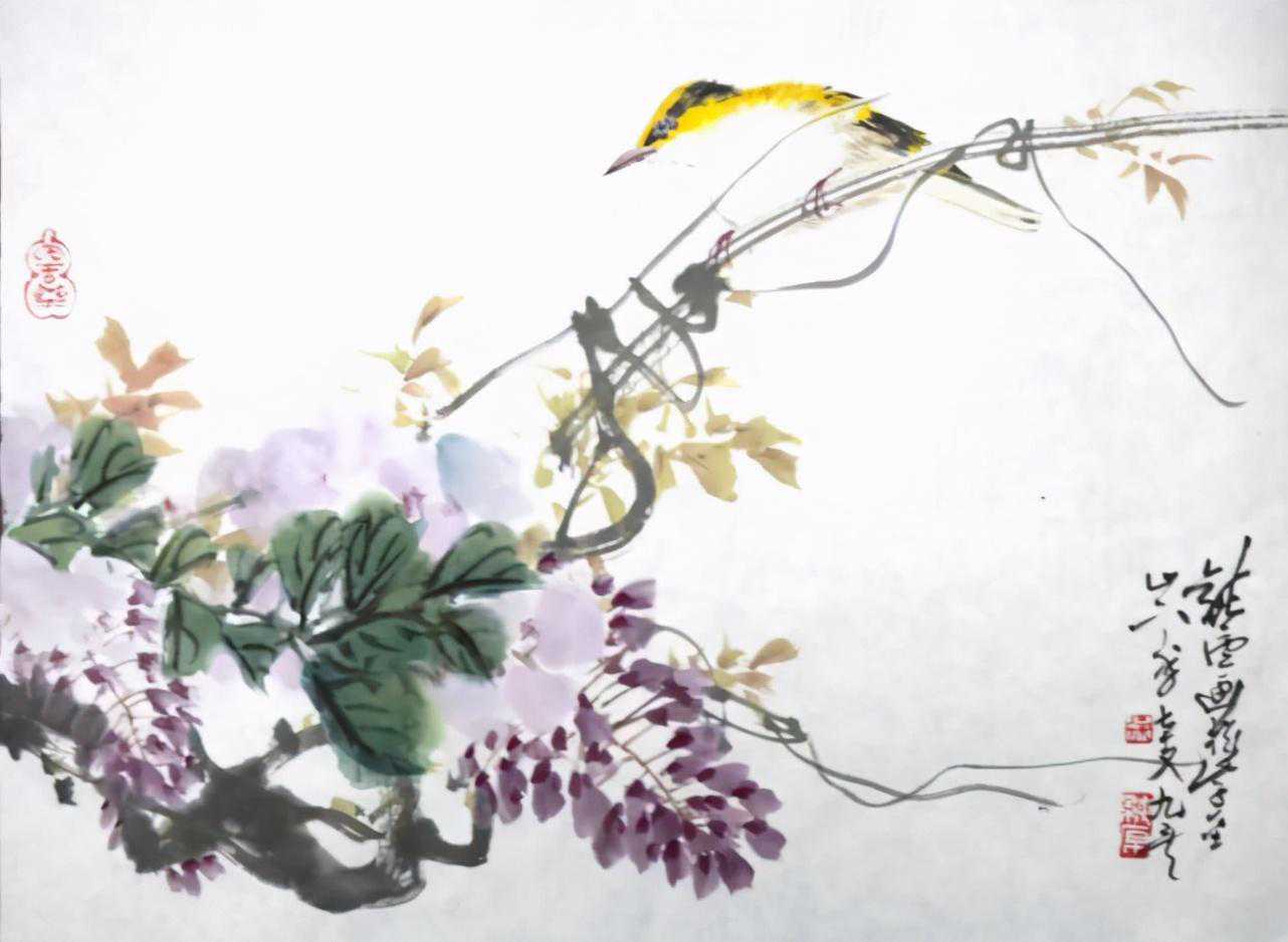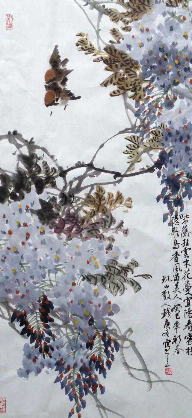 《紫藤黄雀》70×47cm2021年