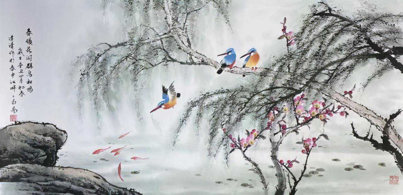 《春暖花开鸟儿鸣》136×68cm2021年