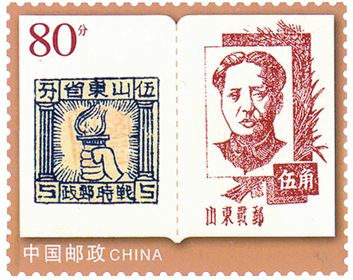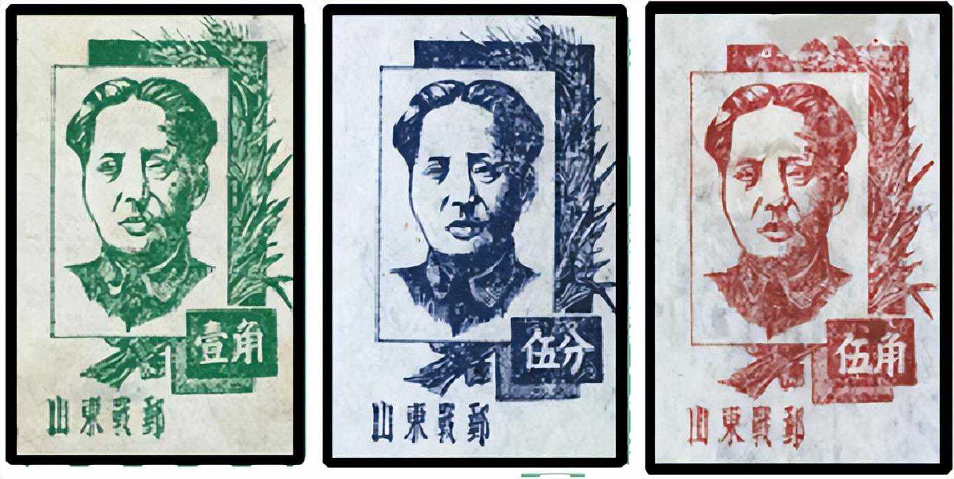 1945年9月,发行的被称为“第一版朱德像邮票”。1946年,山东战邮总局加深颜色再次发行,被称为“第二版朱德像邮票”,仍为5种面值。