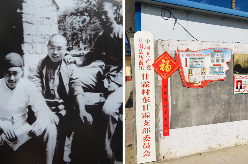 (左图)赵志刚局长(中)和战友在莒南;(右)现莒南县坊前镇甘霖村。