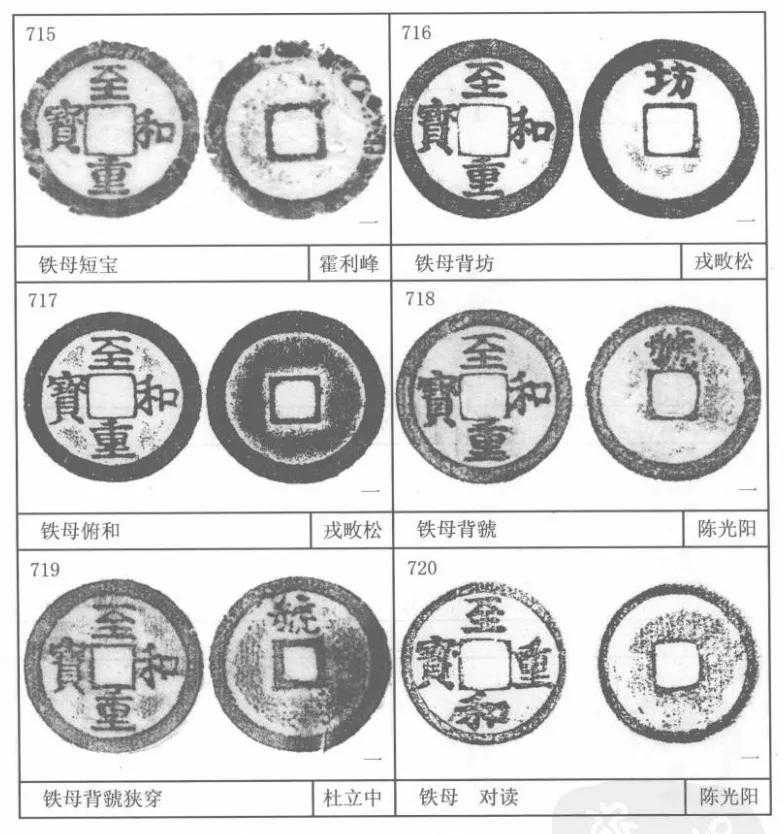 至和年间还铸造了一种至和重宝,有折二、折五两种制式,其中折五制式里面背有“坊”鄜延路坊州鄜监、“虢”陕西路虢州朱阳监等记地名者,主要面文为真书,存世量极少。价值较高,不容易碰到。