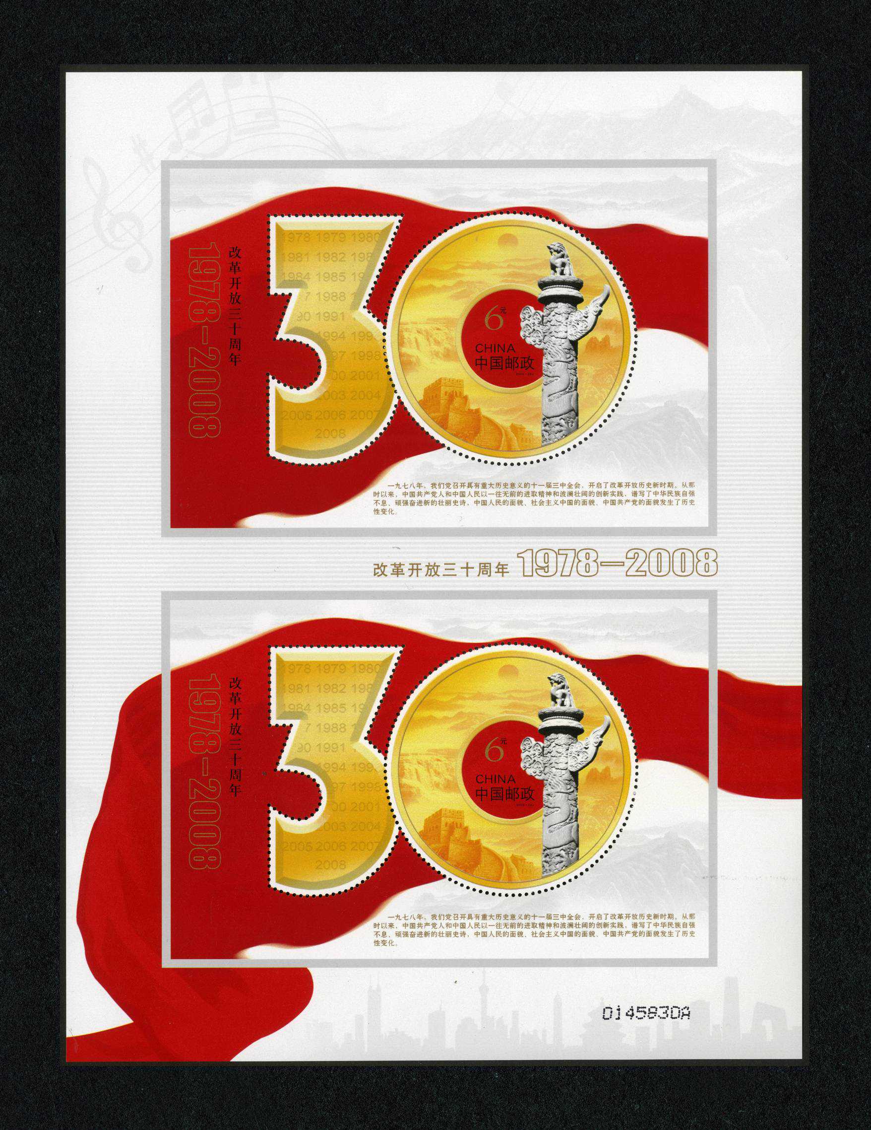 双联小型张,顾名思义,就是将两张同样图案的小型张上下或左右相连印在一起,也有人称作双连小型张。
