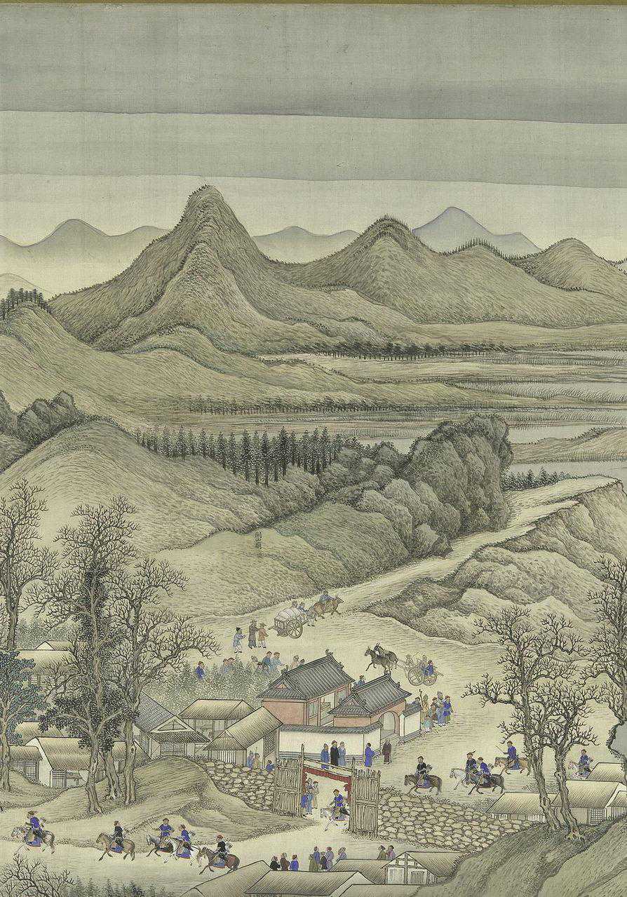 《康熙南巡图卷》共十二大卷,堪称王翚创作画中的钜制,画面自京城永定门开始,至绍兴大禹庙,再经金陵回京城,沿途城乡风光、社会生活、山川景色以及康熙南巡时的盛况,安排得井然有序,又富于穿插变化,场面之浩繁,内容之丰富,笔墨之多样,实为清代手卷中的宏篇,可以看出王翚驾驭场景的高超能力。