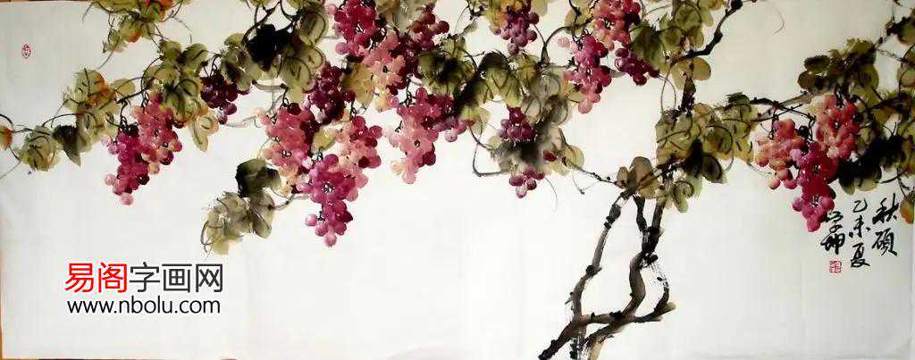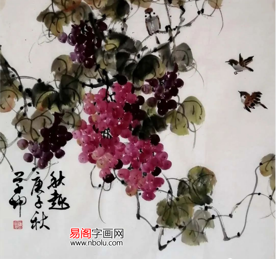 紫玉凝珠挂翠藤,龙须想绕透清澄。崔学坤的写意葡萄,立意、色调、构图都很考究,他凭借娴熟的笔法,深厚的绘画功底,创作了多幅精致绝伦的葡萄画作。笔下葡萄,颗粒晶莹剔透,惟妙惟肖,色彩明快浓淡相宜,令人垂涎欲滴,鲜活生动独树一帜,备受大众喜爱。