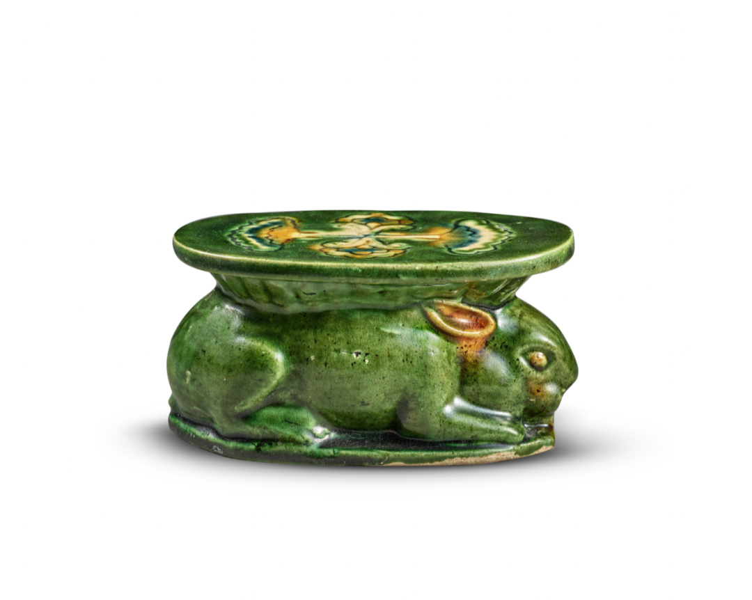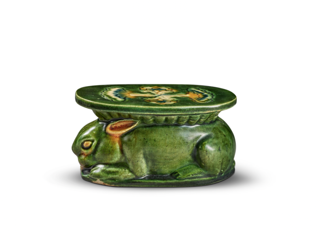 唐三彩瑞兔形枕