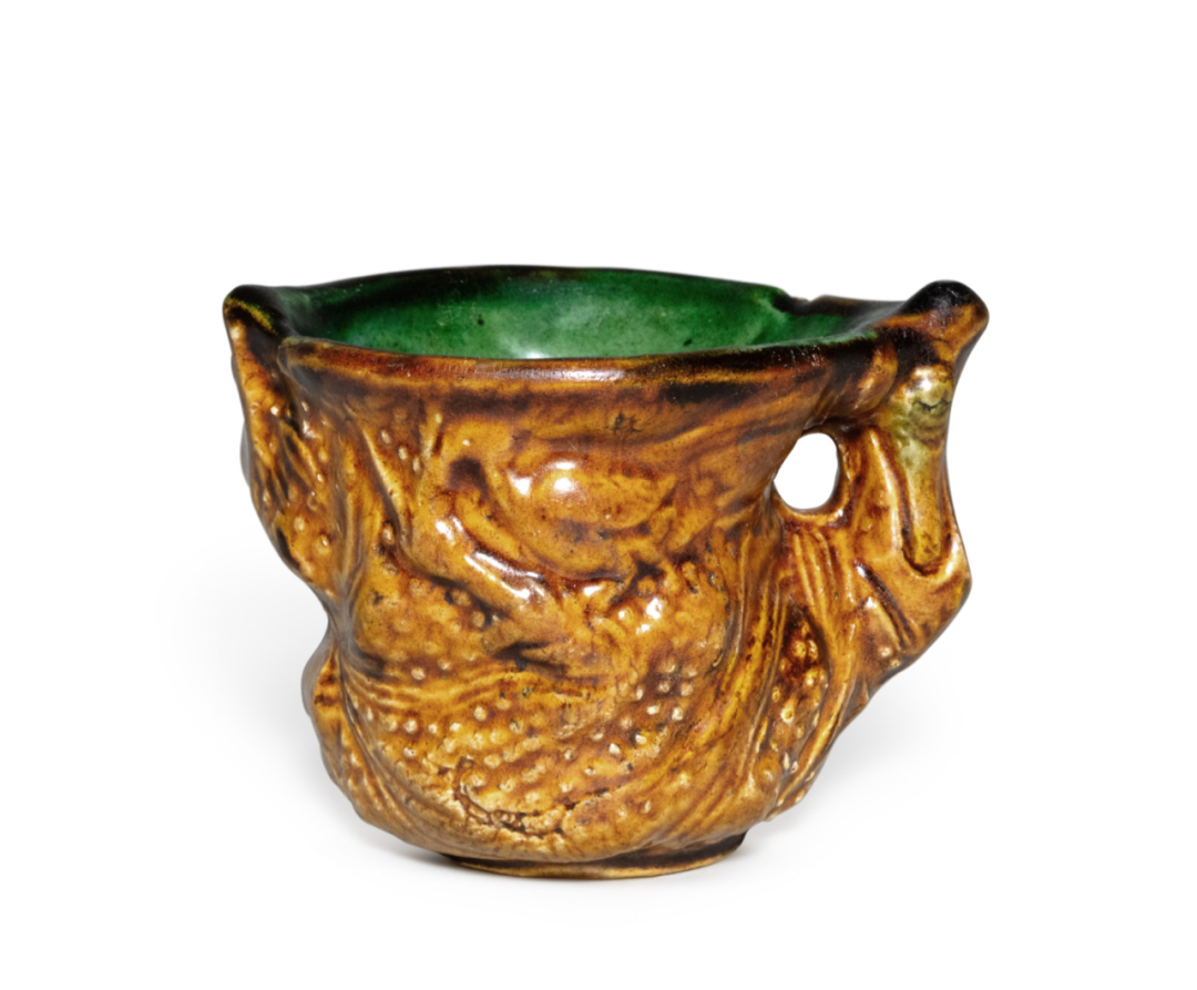 唐三彩模印树椿式小盃