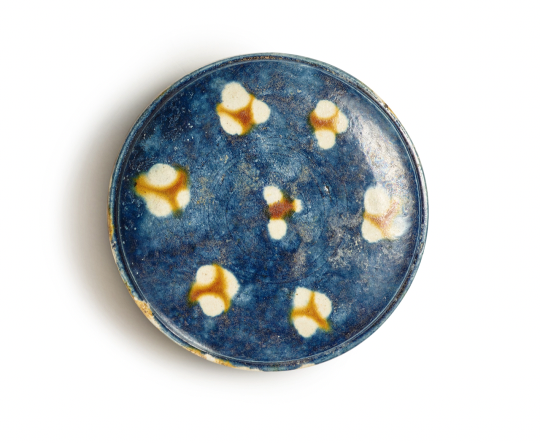 唐三彩加蓝宝相花纹三足盘