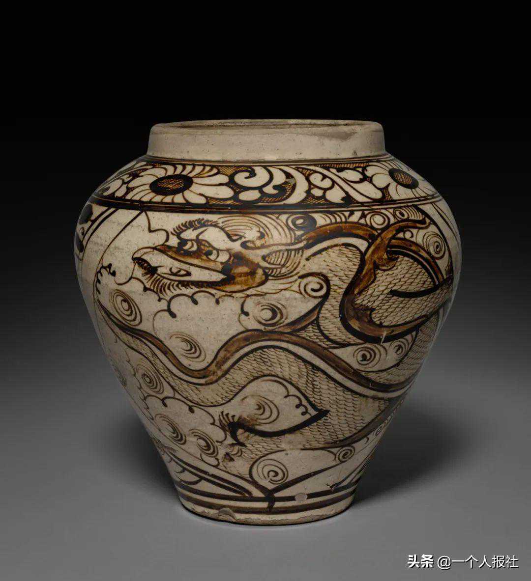 南宋吉州窑褐彩绘波涛纹梅瓶