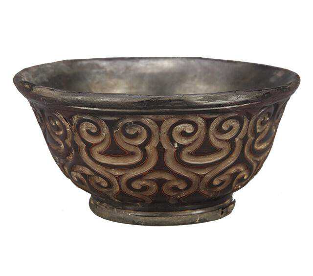 江苏沙洲出土的一件包银竹胎漆碗