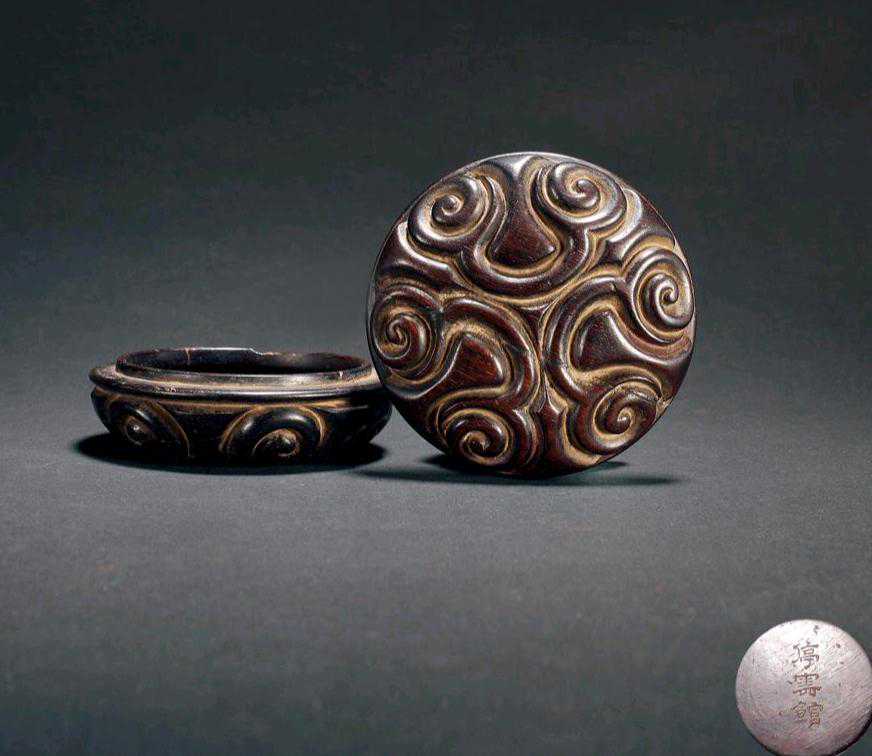 此款紫檀仿剔犀小圆盒蓝本为保利2011年“京华余晖-清宫木器杂项专场”中的:明代“停云馆”款如意云纹紫檀盒,直径8厘米。成交价为115万元。选用上等紫檀木老料,仿剔犀雕如意云纹小圆盒,运用剔犀中的峻深雕刻法,自然流畅刀法、行云流水,简单的几何图案考验匠师对器物造型和剔犀工艺的理解,灵动的图案和曲面中更见卷云纹的古拙意味。