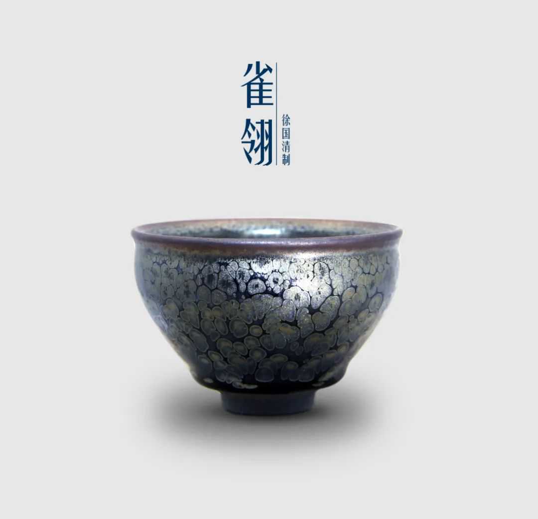 徐国清烧制的建盏器型精致,釉色优美,釉面采用天然矿釉,每只盏的斑纹和形状都有细微变化,意趣天籁,美轮美奂。