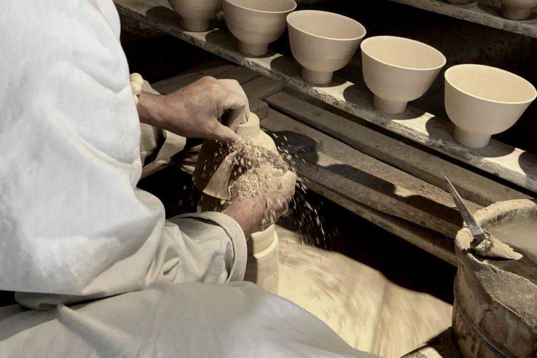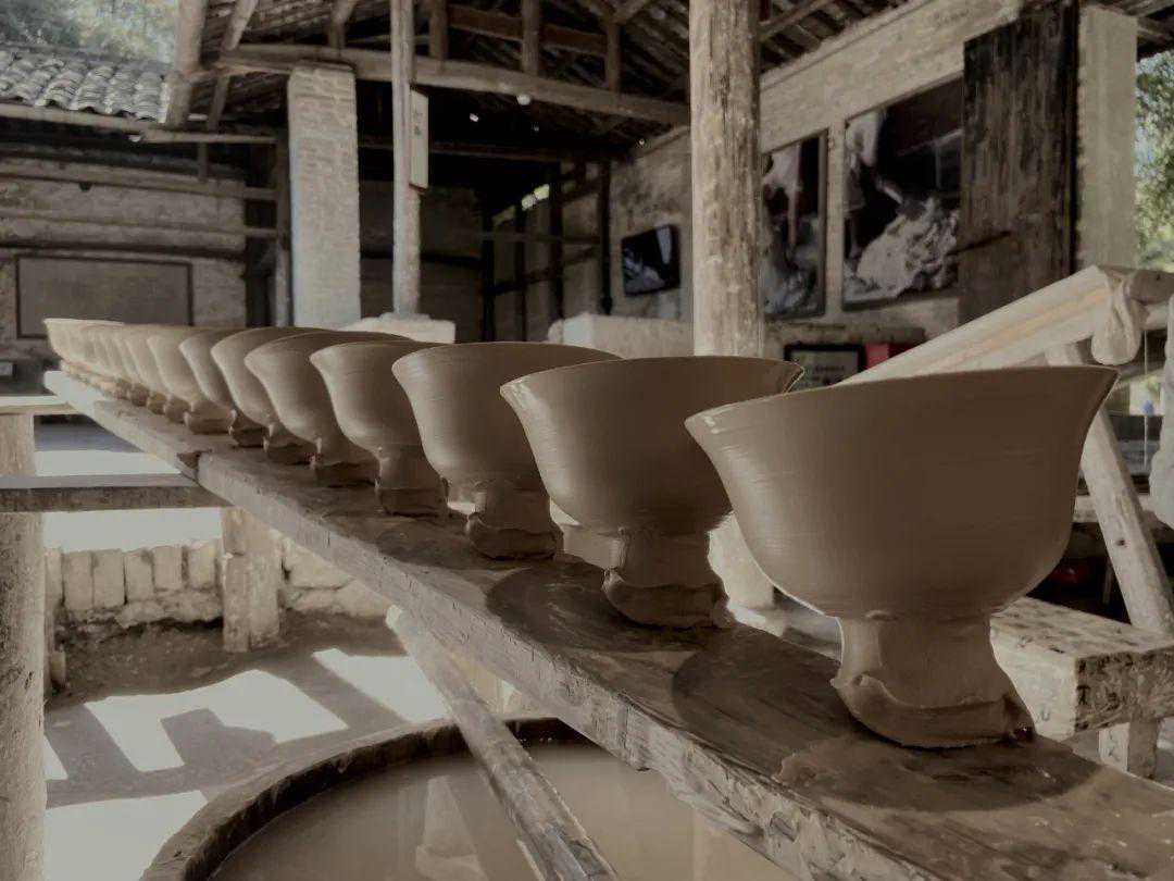 从选瓷矿、瓷矿粉碎、淘洗、配料、陈腐、练泥、揉泥、拉胚、修胚、素烧、上釉、装窖、焙烧等,历经13道工序,手工工艺的制作使得每只盏都形成有自己的特色,它们或在器型、厚度、晶体上有着细微不同,而这也正是建盏的魅力所在。