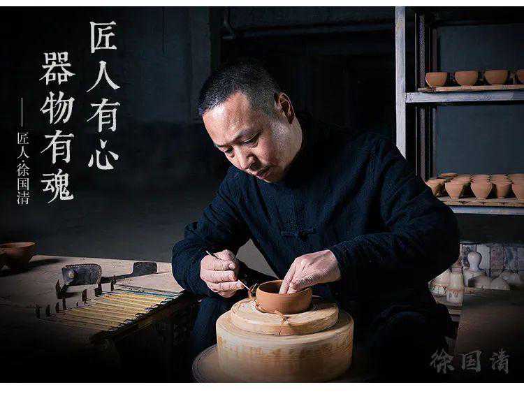 大师级匠人徐国清出生于福建省南平市建阳区小湖镇贵源村,是建阳区建盏制作技艺代表性传承人。儿时他时常在玩耍时去后山坡拾取建盏碎片观察揣摩,渐渐喜爱上建盏,后由于喜爱制陶烧瓷工艺制作,开始从事建盏研究。