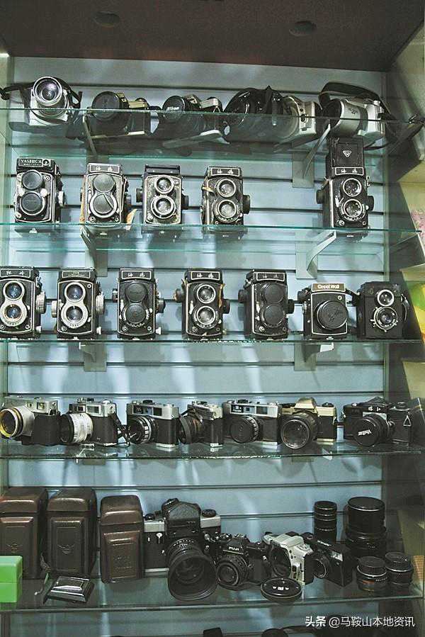 在马鞍山湖东路中段一个不到40平方米的店铺里,藏着一家小型的照相机“博物馆”——这里有上世纪出产的老式相机,有120、135类型的手动胶卷相机,也有数码卡片机、单反相机大大小小近200台。